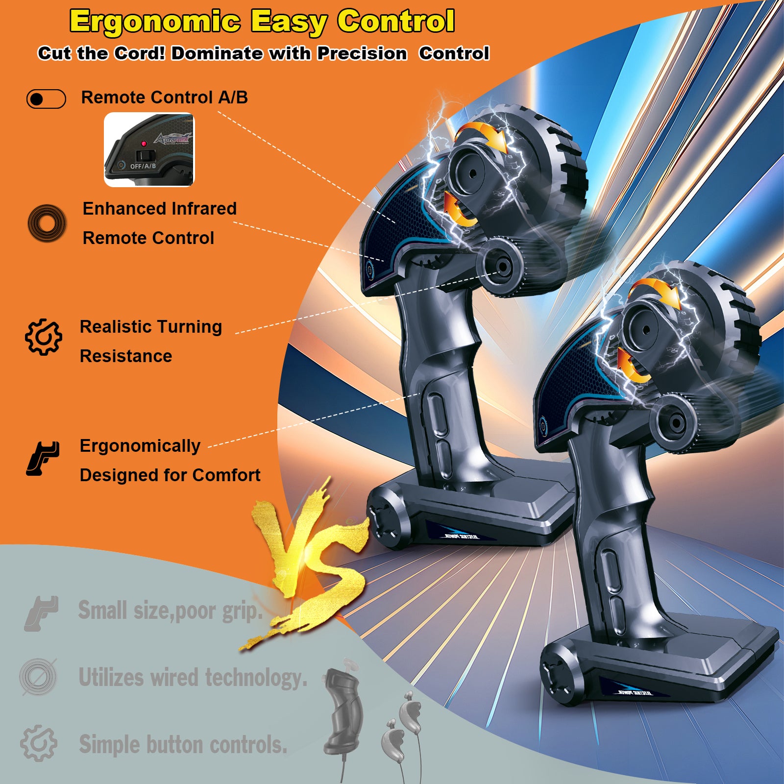 - ✨🏁 Dual-Player High-Speed Racing Thrills: Enjoy epic races with two rechargeable cars and two remote controls, each featuring 4-speed levels, 2 reverse gears, and shake-to-speed control— the faster you shake, the faster they go! Perfect for parent-child bonding, while also enhancing your child's manual dexterity and control skills. Experience effortless control with our advanced remote, working seamlessly within a 5-meter range. Whether up close or from a distance, your child can easily navigate their high-speed car for non-stop excitement.